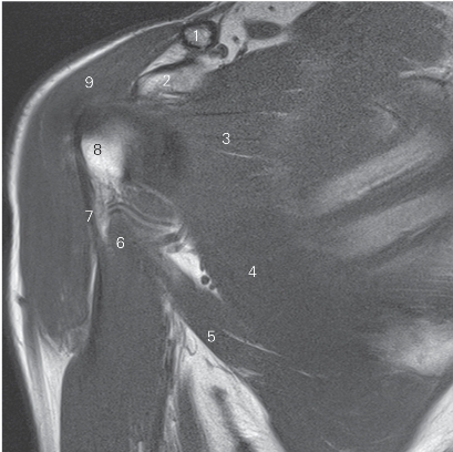 7 冈下肌 infraspinatus 8 肩关节腔 cavity of shoulder joint