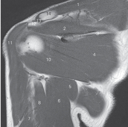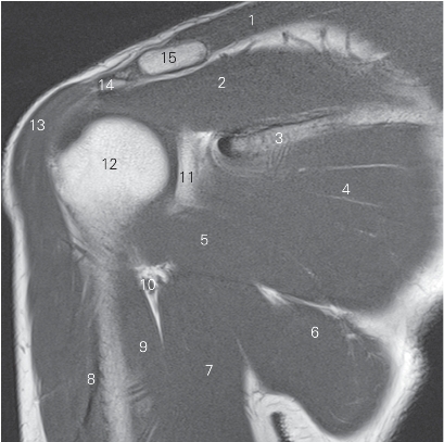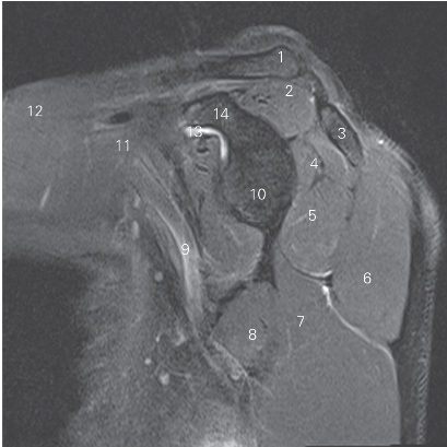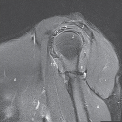 11 肱骨小结节 lesser tubercle 12 肩胛下肌 subscapularis
