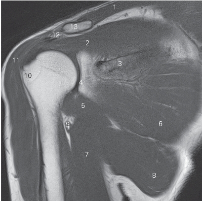 12 肱骨头 head of humerus 13 三角肌 deltoid