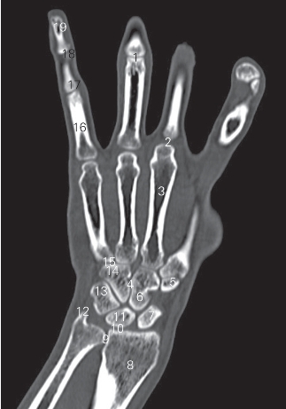 14 钩骨 hamate bone 15 腕掌关节 carpometacarpal joint