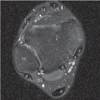 3 内踝 medial malleolus 4 胫骨后肌 tibialis posterior