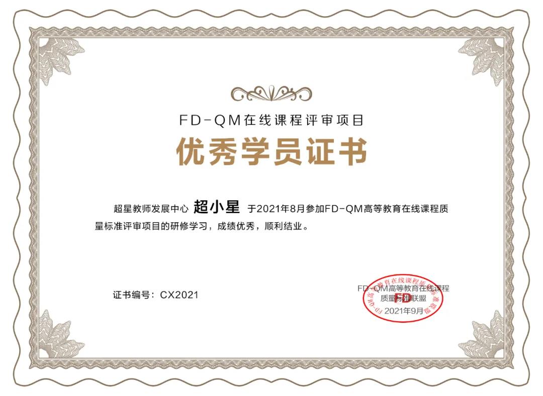 FD-QM标准是复旦大学与课程质量专业保障机构QM合作研究和开发的适用于我国高校在线课程的质量标准,既能与国际标准实质等效,又能解决中国高等教育在线课程建设和应用问题,为我国在线课程质量的提升提供有效方案和示范案例。2017年FD-QM标准荣获美国远程教育协会的首届“国际影响大奖”。