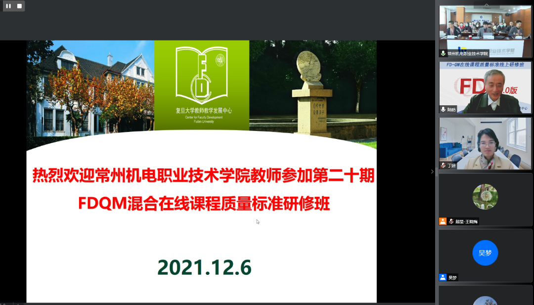 2021年12月6日-2022年1月13日,第20期FD-QM高等教育混合在线课程质量标准研修-常州机电职业技术学院班顺利结业。