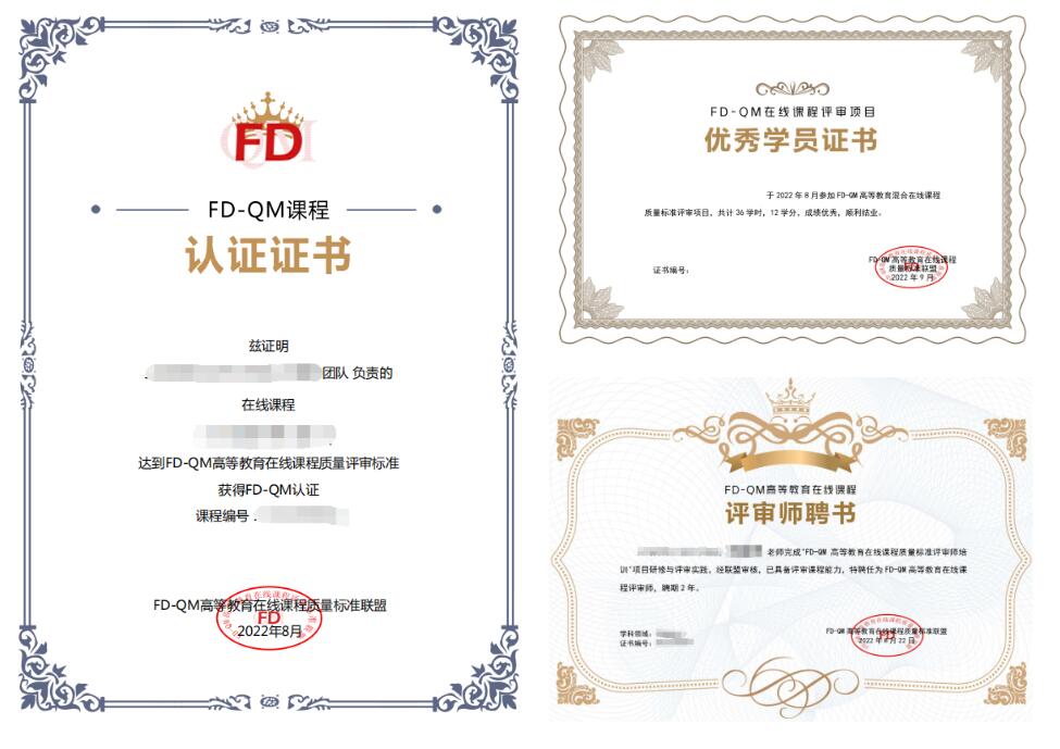 2022年6月-8月,复旦大学教师教学发展中心联合超星尔雅集团共同组织开展第24-27期FD-QM高等教育混合在线课程质量标准线上研修班,来自全国28所本科及高职院校的170+位教师参加。147位参训教师在研修中取得优异成绩,荣获优秀学员证书;10余门课程通过FD-QM标准认证,20余位学员获得FD-QM评审师/助理评审师资格。研修班助力高校建设优质在线课程,推进混合式教学。