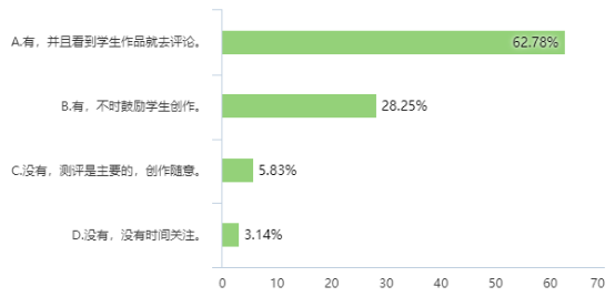 活动的持续开展离不开老师的支持与鼓励,在活动进行中,90%以上的老师会鼓励学生发表作品并积极认真参与互动。同时,平台提供数据报告进行支撑,超过94%的老师会经常或者偶尔参考活动数据,鼓励学生的积极参与到活动中。
