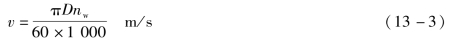 输送带速度v与滚筒直径D(mm)、滚筒轴转速nw的关系为