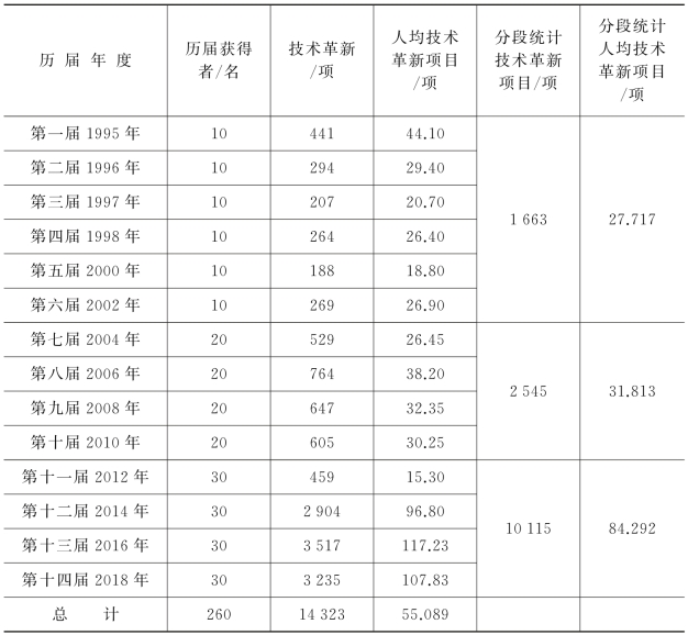 1.4.2第二节 历届技能大奖获得者人数综合统计