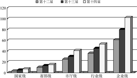 图6-8 第十二届至第十四届中华技能大奖获得者科技奖项统计