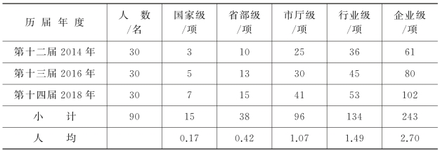 表6-8 第十二届至第十四届中华技能大奖获得者科技奖项统计