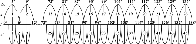 b.3°分带。3°分带法是从东经1°30′经线开始,每3°为一投影带,将全球共分为120 个投影带。各投影带中央子午线的经度分别为东经3°,6°,9°,…,180°,西经177°,…,3°,0°。