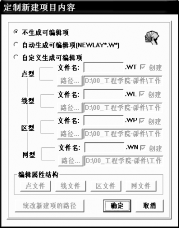 ③选择“自定义生成可编辑项”,既可自定义文件的路径名和文件名,又可定义是否创建某一类型的文件。