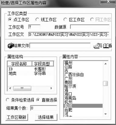 给出检查结果文件路径和名称,单击属性结构中某个字段,在右边窗口中就出现点文件中该字段的所有属性值。单击某个属性值,再单击“选择结果”,在工程中可以看到该属性值对应的图形在闪烁,这时可以对结果图形进行各种编辑。同时可以查看结果文本文件内容,还可以按条件检索某些满足条件表达式的图形,其操作方法类似。