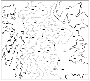 图3.20 等高线自动赋值效果图(深黑色的为未赋值等高线,其余为已赋值等高线)