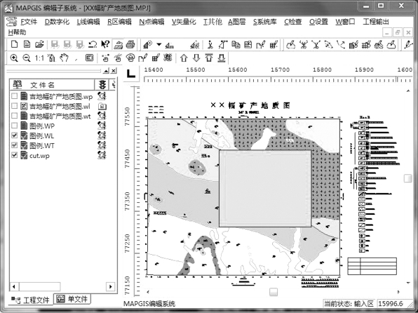 图形编辑完成后,由于用途不同,经常会出现需要图形中的一部分的情况,为了满足该需求,MapGIS 软件提供了裁剪功能,裁剪方法一般包括线裁剪(图形裁剪)和工程裁剪两种,前者在图形裁剪子系统中完成,后者在输入编辑子系统中完成,以下以工程裁剪为例介绍裁剪的总过程。