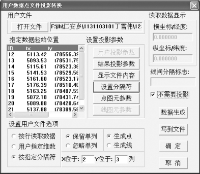 第2 步:在弹出的“用户数据点文件投影转换”对话框中设置参数。