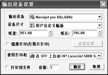 ③打印光栅文件,选择刚刚生成的*.NV1 光栅文件,系统将输出设备设置对话框,如图3.90所示。