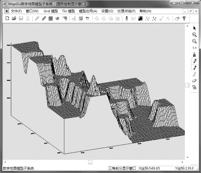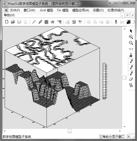 第2 步:单击“Grd 模型”菜单下的“格网立体图绘制”命令,系统弹出规则网立体图绘制参数设置对话框,如图3.94所示,设置完成后单击“确定”按钮即可生成格网立体图,结果如图3.95所示。