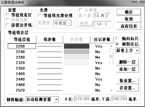 a.将“等值线套区”打“√”,将“等值线光滑处理”打“√”,并将光滑度选择为“高程度”。