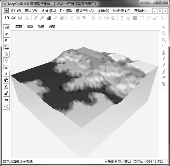 该功能用于作地面模型的坡度、坡向、粗糙度分析。此功能先对原始稀疏数据加密,然后计算各单元的坡度、坡向或粗糙度,并将结果数据以“.BMP”或“.GRD”(其高程信息为高程点的坡度、坡向或粗糙度)格式保存到用户指定的文件中,供制图或分析时使用。用户如果想绘制坡度图,可以先用此功能产生坡度GRD 文件,然后运用“平面等值线图绘制”功能就可以出坡度图了。