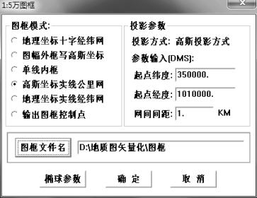 第2 步:设置图框参数,主要包括图框模式、投影参数、椭球参数等。
