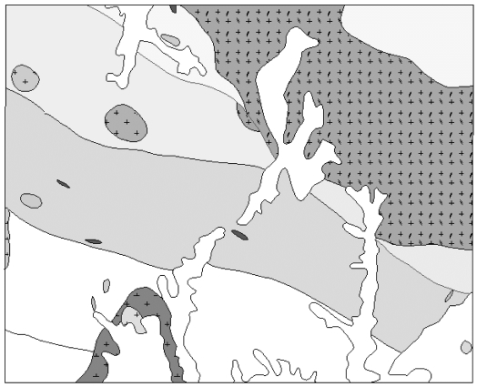 图4.29 ××幅矿产地质图拓扑造区结果图