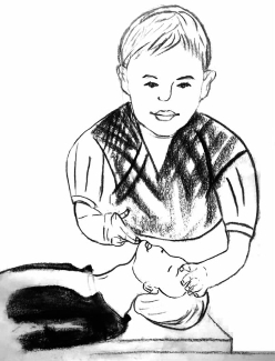 (2)用按于前额的手的食指和拇指捏紧患者双侧鼻孔。