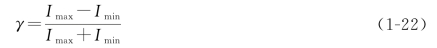 式中,Imax和Imin分别是干涉条纹光强的极大值和极小值。当暗条纹光强度Imin=0时,γ=1,可见度最大,条纹最清晰。当Imax≈Imin时,γ≈0,可见度最小,光强均匀分布,条纹完全消失。