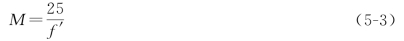 从式(5-2)和式(5-3)可看出,对于焦距较小的凸透镜其放大率较大。但由于像差的存在,一般单个凸透镜的放大率为2~3,若采用由透镜组合而成的放大镜,则可将放大率提高到20。