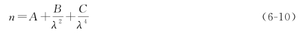式中,λ为光在真空中的波长,A、B、C为与介质有关的常数,其数值由实验数据来确定,当波长变化范围不大时,柯西公式可只取前两项,即,则介质的色散率为