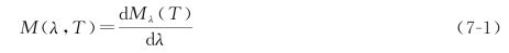 若温度为T的物体,从单位面积上发射出来的波长在λ~λ+dλ内的辐射功率为dMλ,则定义dMλ与dλ之比定义为单色发射本领,即单色辐出度,用M(λ,T)表示: