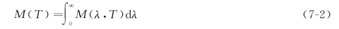 单色辐出度是对某一波长而言的。从物体表面单位面积上发射的各种波长的总辐射功率称为辐射出射度,用M(T)表示,显然辐射出射度与单色辐出度的关系为