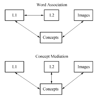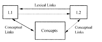 Research on bilingual memory suggests that words in each language are stored in separate lexical systems,but that concepts are stored in a representation common to both languages.When individuals are in early phases of acquiring a second language,lexical connections appear to mediate cross-language performance.However,as second language learners acquire expertise,they begin to conceptually mediate their understanding of second language words.In this part we focus on the implications of this change for second language representation.We present(1)evidence that suggests that lexical connections between the two languages remain active after concept mediation is achieved,and(2)a model of bilingual representation in which cross language connections between lexical and conceptual memory are asymmetric.