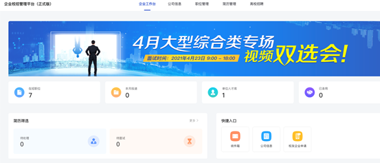 1) 企业工作台:用人单位在企业工作台查看招聘数据