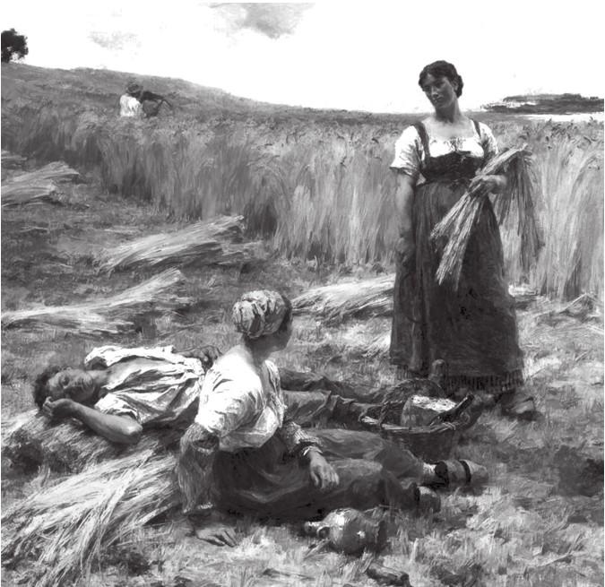 19世纪末期的法国,城市和农村的社会角色开始大变革,整个国家迅速地现代化,城市也加速实现工业化。文明、进步的北方和布满农庄和农民的南方,形成泾渭分明的态势,各大区之间几乎没有人口流动。图为法国画家莱尔米特的画作《圣佩尔山的割麦人》。