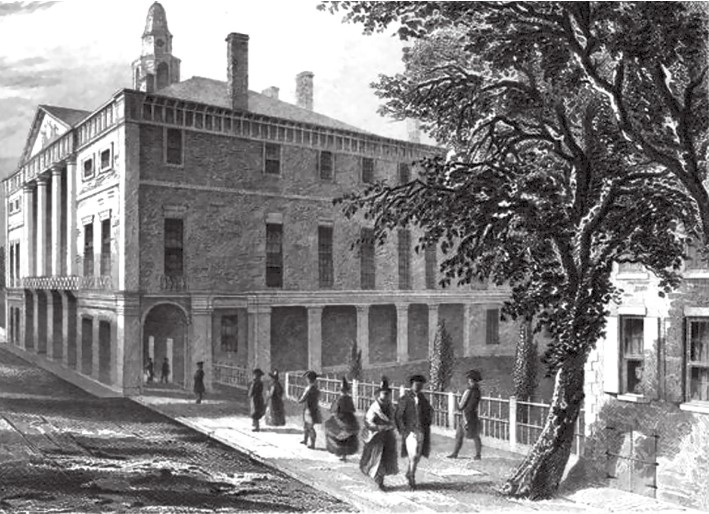 华尔街是一条位于纽约曼哈顿下城的狭窄街道,街上云集了纽约证交所、纳斯达克、美国证交所和纽约商业交易所等众多世界顶级金融机构的总部,堪称美国乃至全球最重要的金融中心之一。17世纪中期,荷兰殖民者在新阿姆斯特丹(今纽约)建起一道近4米高的木墙,以抵御印第安人和英国人的入侵;后来沿着这道墙规划出一条道路,便起名“华尔街”,本义为“墙街”。18世纪,一些交易员和投机者来到华尔街街角,开始在一棵梧桐树下从事非正式的证券买卖。美国独立后,他们在这里订立了《梧桐树协议》,宣布此地为证券交易的场所,这便是纽约证券交易所的雏形。图为1789年的华尔街街景,从中可以清楚看到那棵梧桐树。