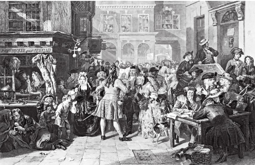 1711年成立的南海公司,表面上是一间专营英国与南美等地贸易的特许公司,但实际上是一所协助政府融资的私人机构,分担因西班牙王位继承战而欠下的债务。南海公司于1720年通过贿赂政府,向国会推出以南海股票换取国债的计划,促使南海公司股票大受追捧,股价由年初约120英镑急升至同年7月的1 000镑以上,全民疯狂炒股。结果,市场上涌现不少“泡沫公司”浑水摸鱼,试图趁南海股价上升的同时分一杯羹。为规范管理这些不法公司,国会在6月通过《泡沫法案》,炒股热潮随之减退,并连带触发南海公司股价急挫,至9月暴跌回190镑以下的水平,不少人血本无归,其中包括著名物理学家牛顿爵士。这次事件被称为南海泡沫事件,与密西西比泡沫事件、郁金香狂热并称欧洲早期三大泡沫之一,“经济泡沫”一词便是由此而来。