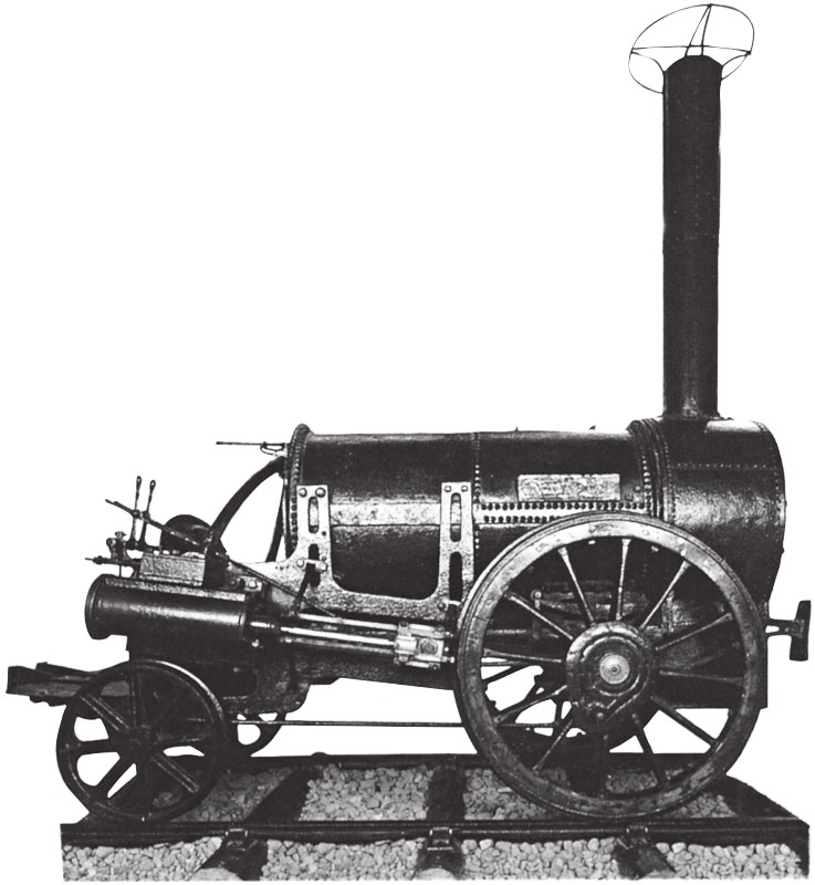 19世纪初出现的蒸汽机车彻底改变了人类的长途交通,这项技术一直沿用到“二战”后,才逐渐被内燃机车所取代。第一部蒸汽机车是由英国人特里维西克在1804年2月21日制造,之后经过多年改进,蒸汽机车的经济效益才足以在商业上营运使用。乔治·史蒂芬孙在1830年制造的火箭号是最早在商业成功使用的蒸汽机车。图中所示的,便是史蒂芬孙的火箭号。