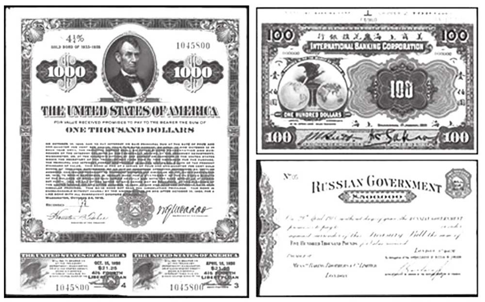 国库券是国家财政当局为弥补国库收支不平衡而发行的一种政府债券。它以国家财政收入为还款保证,其债务人是国家,所以它几乎不存在信用违约风险。它在很多时候甚至可以代替一般货币的功能。图为南北战争期间美国发行的国库券。