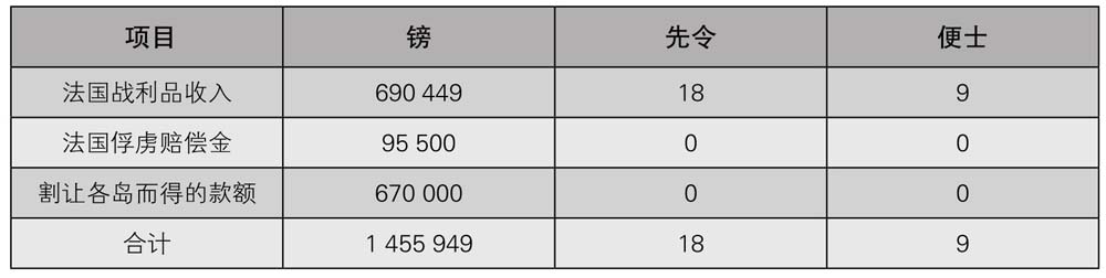1775年1月5日,英国长期公债为124 996 086镑1先令6便士;短期公债,除去一大笔皇室债务后,为4 150 236镑3先令11便士,两者合计为129 146 322镑5先令6便士。以此计算,在17年的和平时期,所偿还的债务仅为10 415 474镑16先令9便士。然而,即使这么小额度地减少公债,都不能用国家日常收入的节余偿还,还有许多是用和国家日常收入不相干的外来款项在偿还。其中包括3年内对土地税每镑增加1先令的税款,东印度公司为获得新地区而缴纳给国家的赔偿金200万镑,以及英格兰银行为更换特许权而缴纳的11万镑。还有的如由最近一次战争所产生的若干款项,也要附加到外来的款项中。主要如下表: