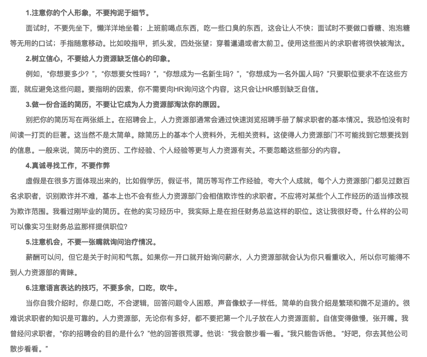 面试的注意事项