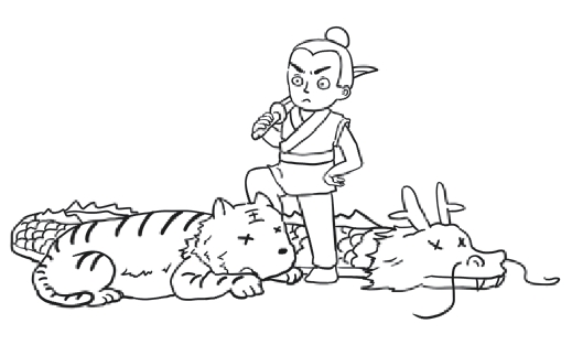 周处听后,就立刻上山去刺杀老虎,又下河去斩蛟龙。