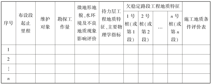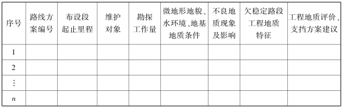 表3.7 支挡工程初步勘察工程地质分段评价表