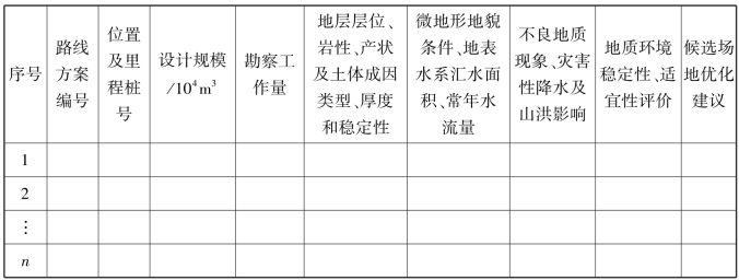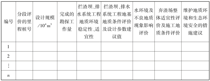 a.弃渣场详细勘察报告或弃渣场详细勘察工程地质条件评价表(表3.31);