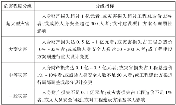 山区地质环境十分脆弱,地质营力活跃,常因岩石风化、强降水、地震等自然因素或人类大型工程活动引发环境恶化和地质灾害,是地质灾害的易发区和频发区,这些地段也是山区公路建设、营运现代化管理最关注的地区和路段。为有效地开展山区复杂路段公路工程地质勘察,本章重点对滑坡路段、崩塌路段、泥石流路段、强岩溶化路段、渗漏路段、水库塌岸路段、矿山采空区路段等地质条件复杂路段的公路工程地质勘察技术方法进行论述和介绍。为便于公路工程地质勘察,分轻重缓急地处置地质条件复杂路段的不良地质现象和地质灾害,本书按地质灾害的危害程度和产生的后果,将地质灾害分为超大型、大型、中等和一般四级,见表4.1。