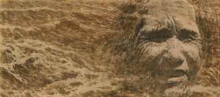 于是他们将他搬到舱沿边,先将他手上和脚上两条拖着的绳子,缚在船沿的铁栏杆上,然后将他抬过栏杆向江内吊下去。人并没有浸入水内,离水面还有一尺多高,只是仰吊在那里。被轮船激起的江水溅沫,急雨般打到他面上来。