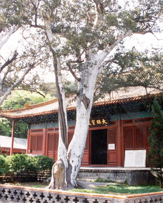 前来法海寺游玩、参观壁画的人,没进山门之前就能远远地望见金黄的殿顶上白皮松的枝杈伸向蓝天,总是惊诧两棵白皮松那么高大,那么洁白,那么神奇,就像是天上神仙们的杰作,特意种在大雄宝殿前,守卫这座神秘的艺术殿堂,保护人间的旷世奇宝明代宫廷壁画,击掌叹为造化之树。