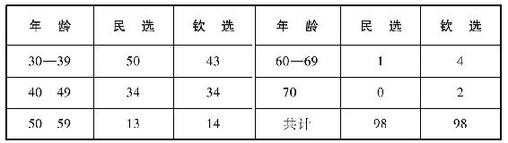 议员年龄,民选者平均得41岁,比谘议局的平均年龄(43岁)还要年轻一些。但钦选议员的年龄较大,平均在45岁上下,这是因为硕学通儒之当选者较为年长之故。整体而言,80%的议员都在30—49岁之间,超过50岁的,仅有16%、17%。(见表5)