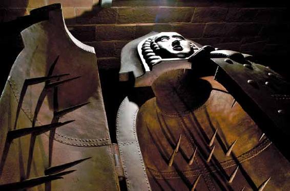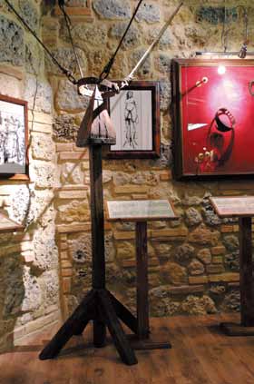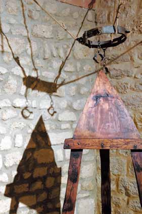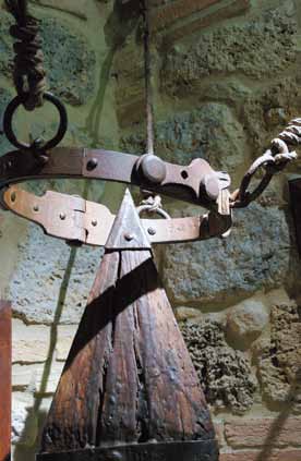 这里有传说中的两种绞刑架。第1种是西班牙绞刑架,刑架上的螺杆可以收紧铁项圈,勒住受害者,令其窒息而死。第2种是加泰罗尼亚绞刑架,不同之处在于,它有一根铁钉来刺穿和压碎颈椎骨,与此同时,它能够压迫整个颈部,铁项圈可以粉碎气管,从而使受害人死于窒息和脊髓神经的损伤。这种痛苦的折磨持续多长时间,取决于刽子手的想法。必须记住的是,绞刑是一种公共奇观,围观民众不会满足于快速的处决。