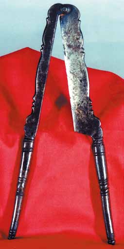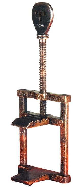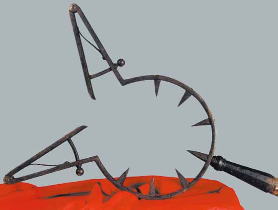 这个简单而精巧的刑具用于残害受刑者的肢体。它可以切割舌头、嘴唇、乳头或者手指关节等。这一制作精良的工具的最早用途,可能是在犹太人割礼仪式中由割礼执行人所使用。