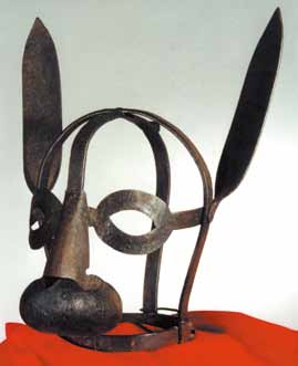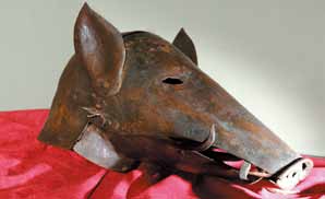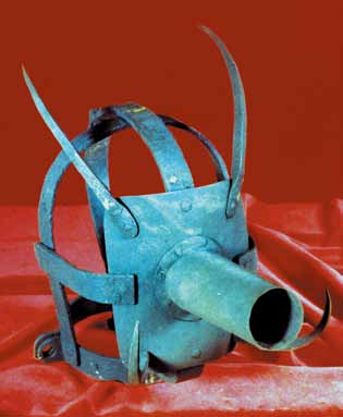 居中是一个笼头,可以作为一种公开羞辱人的束缚刑具(类似于上文提到的口钳与下文将描述的泼妇笼头)。